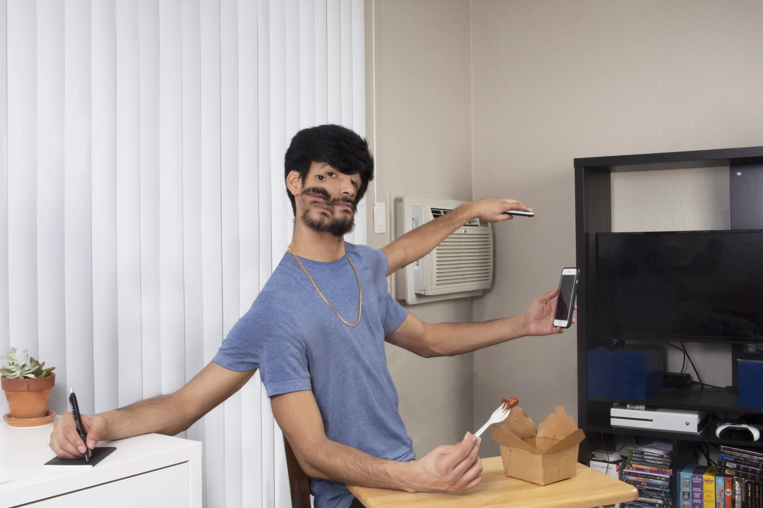 “Reanimation” aims to depict the reconstruction of the human form. Throughout the series, I use photography to illustrate my anxiety and my own perceptions thereof. The creation of this series stems from the idea that humans, as a species, follow social constructs that have been embedded in our societies for centuries. The concept of “normal” is an illusion; however, as a society, we are expected to exist within these socially constructed norms. Social interaction requires that we act with specific mannerisms and a certain level of masquerade. This is manifested throughout the standards of social interaction and our relationships with other humans. As a result of the situations in which we find ourselves and the relationships we develop, the masks constantly change and evolve. Thus, in the act of “fitting in” with social expectations, we take on multiple personas that project themselves into one person. My series is depicted in my domestic space because it is a haven where I am able to remove my social masks. However, in experiencing the removal of one’s social masks, one begins to split into different personas.